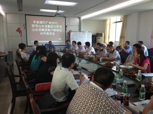 近日,公司召開銀企座談會,集團公司董事長兼總裁吳國強出席會議,會議由集團公司常務副總裁兼財務總監謝偉松主持,平安銀行廣州分行李行長、信貸部經理等以及羅浮山水泥集團客戶近50人參加了會議。