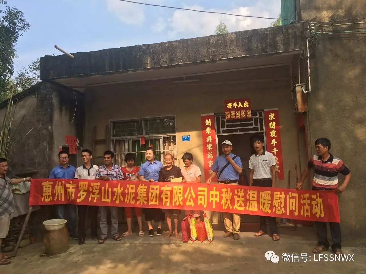 921日下午,正值國慶、中秋雙節即將來臨之際,為讓貧困戶過上一個歡樂祥和的國慶、中秋佳節,惠州市羅浮山水泥集團有限公司以行政副總裁李麗華為領的愛心慰問小分隊來到精準扶貧幫扶村---博羅縣湖鎮塘下村的貧困戶家中進行送溫暖慰問活動,親手將帶來的現金紅包、中秋月餅、食用油、大米等慰問品和慰問金送到貧困戶家中,向他們致以節日的祝福,讓他們在傳統節日感受到濃濃的親情。博羅縣湖鎮扶貧辦何文主任、湖鎮塘下村委會黃書記及相關干部陪同一起進行了慰問活動。
